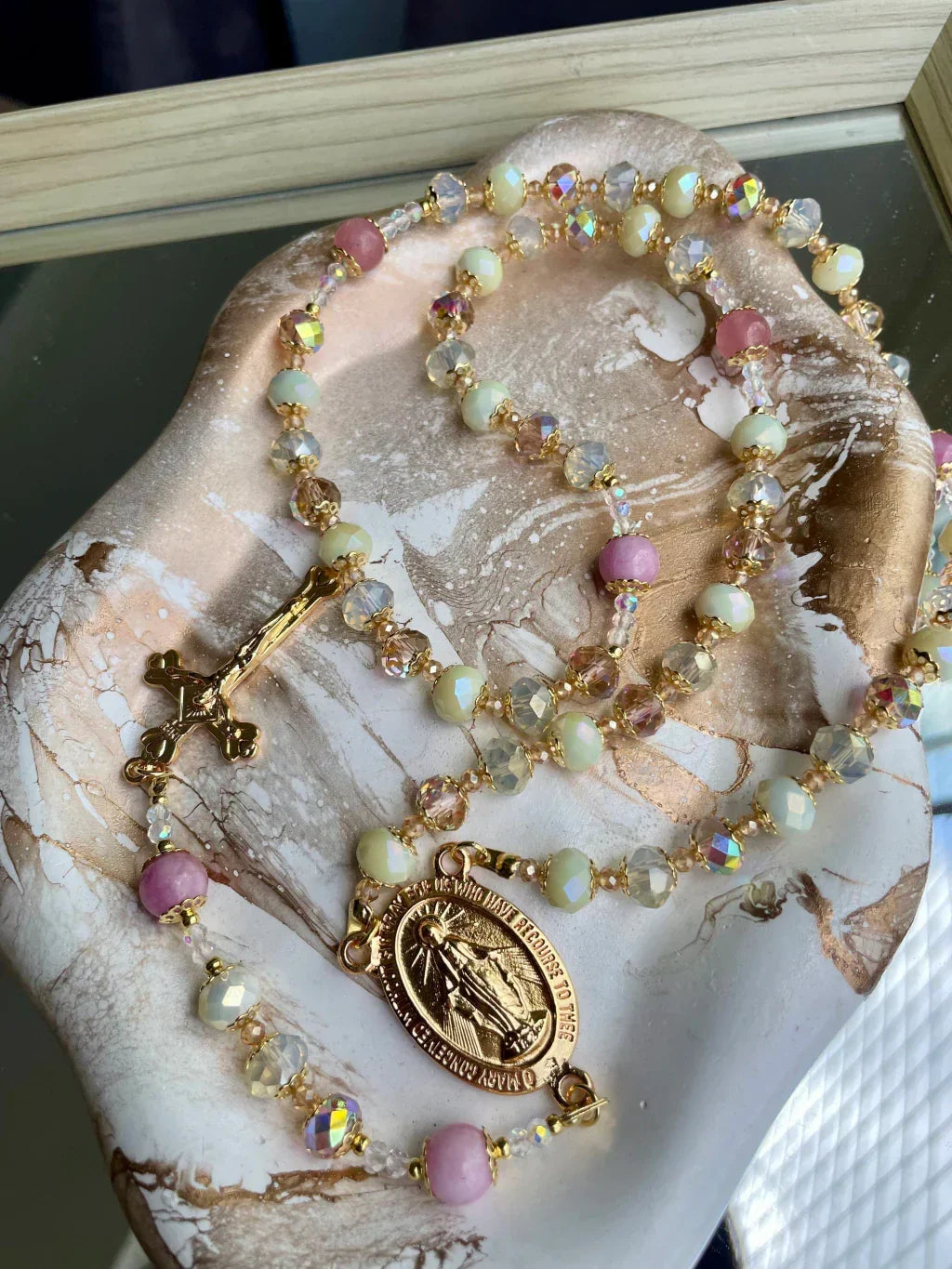 Terço autoral Santa Arte, desenvolvido com atenção aos detalhes e materiais cuidadosamente selecionados, unindo beleza, significado e devoção em uma peça única.
